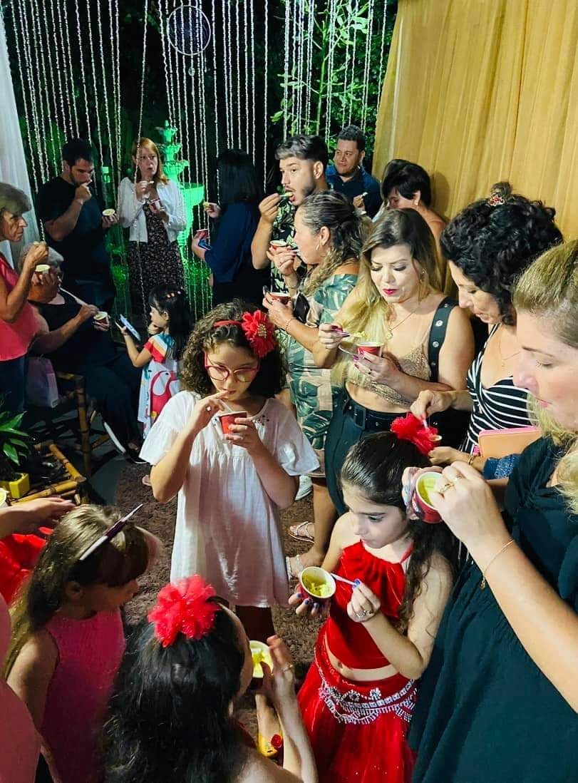 Assim que os convidados entraram no espaço, foram transportados para um mundo de sonhos das arábias. A decoração exuberante, combinada com uma seleção cuidadosa de músicas, criou uma atmosfera que só poderia ser descrita como mística, transformando o local em um palácio digno das mil e uma noites.