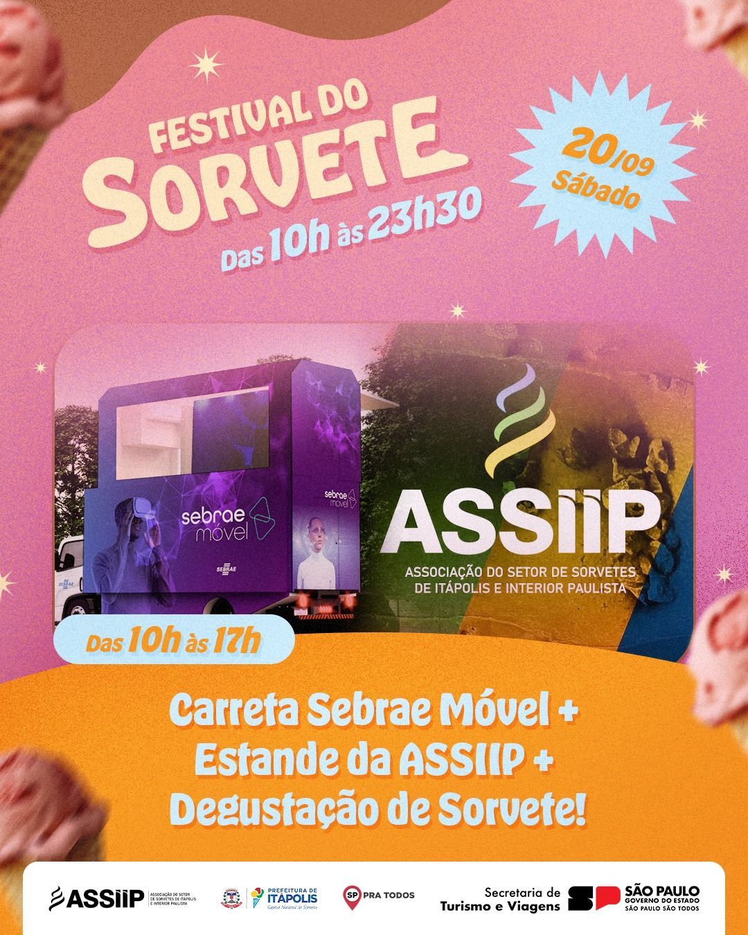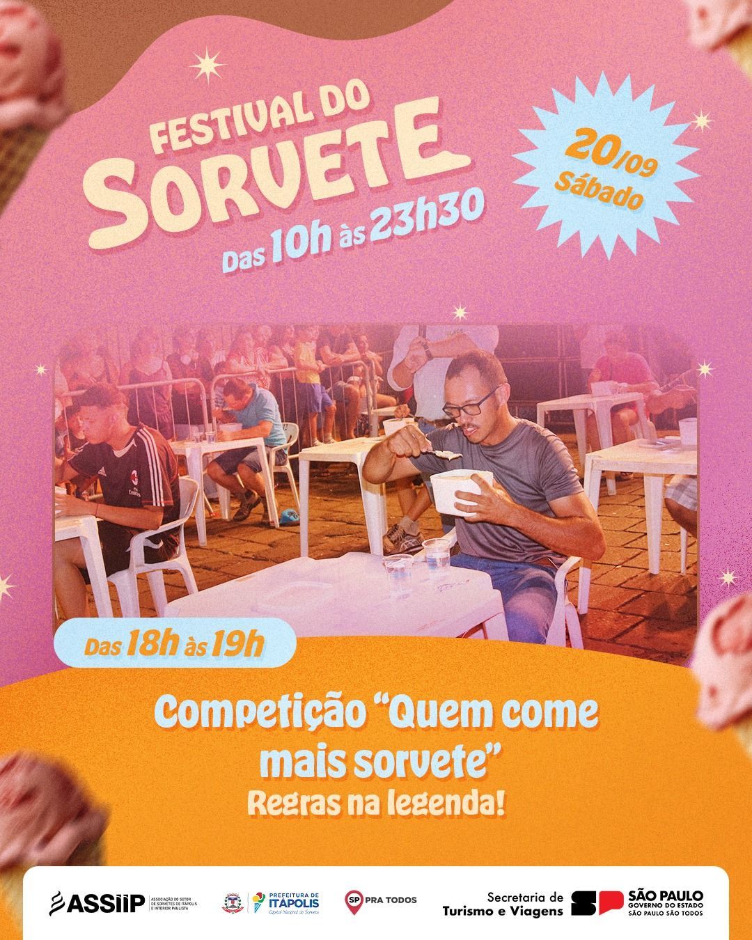 A Solaretto Sorvetes estará presente mais uma vez no estande da ASSIIP, oferecendo seus sorvetes para degustação e preparando novamente o sorvete da tradicional competição “Quem come mais sorvete”, marcada das 18h às 19h. As inscrições começam às 17h30, ao lado do palco principal, com vagas limitadas a 20 participantes. Os vencedores recebem premiação em dinheiro.