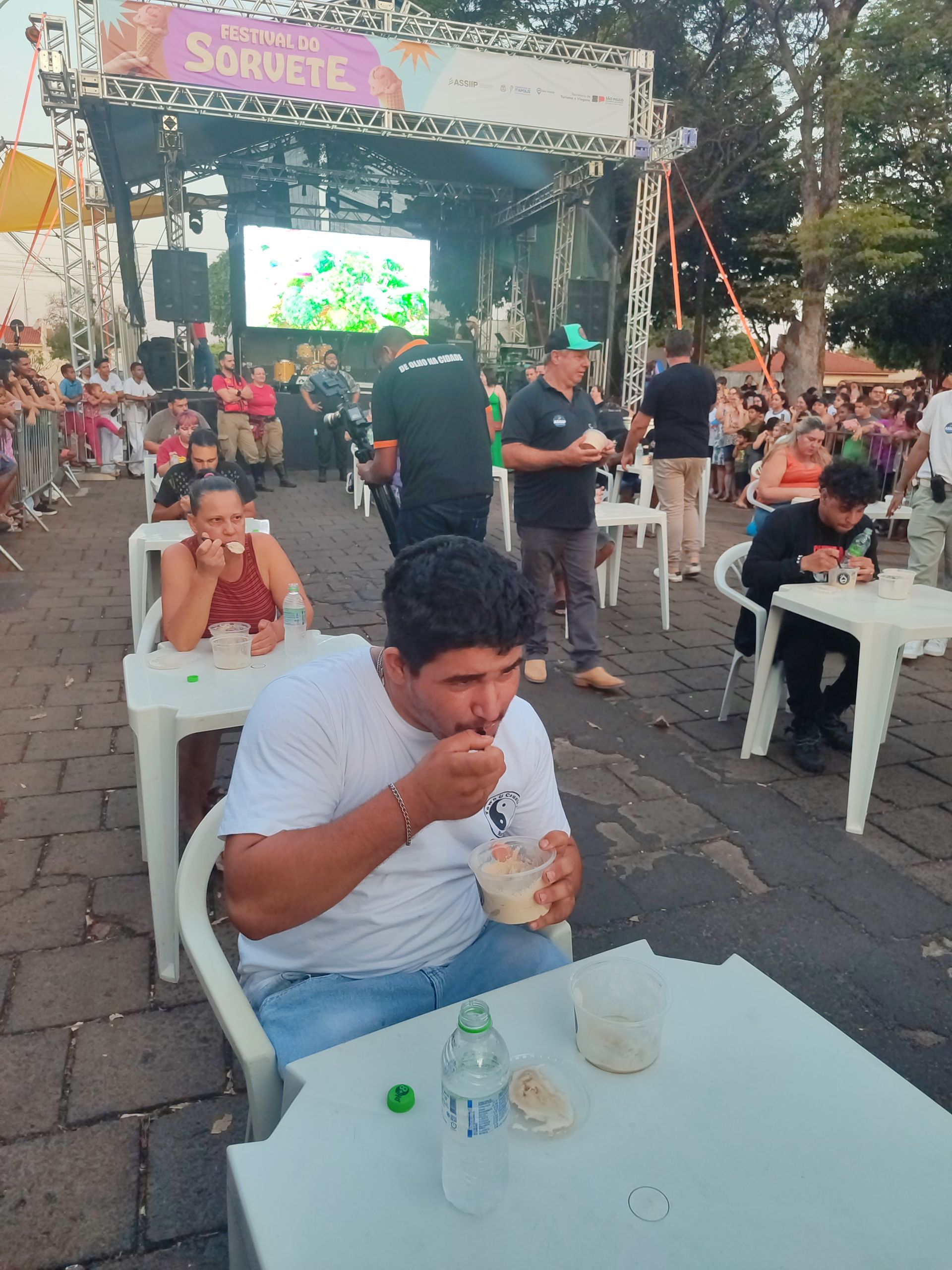 Um dos momentos mais aguardados foi a tradicional competição “Quem Come Mais Sorvete”, vencida por Paulo Henrique Esteves dos Santos Baptista, que consumiu 1,4 kg em apenas 5 minutos. A ASSIIP também promoveu a degustação de sorvetes, reforçando a valorização da tradição sorveteira local por meio das sorveterias associadas.