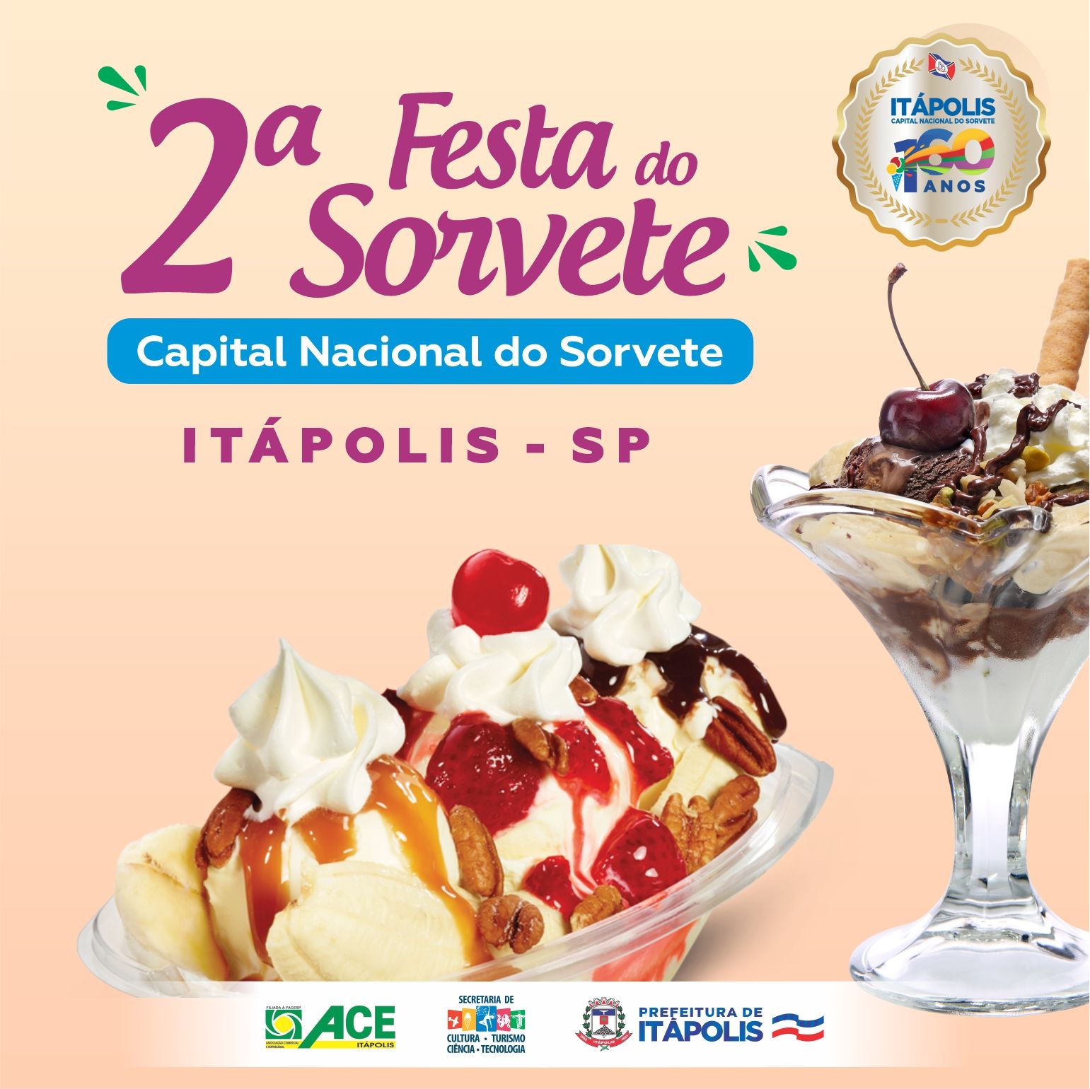 Nos dias 22 e 23 de Setembro, Itápolis irá realizar a 2º Festa do Sorvete, evento esse que faz parte das comemorações do aniversário da cidade que completará 160 anos no dia 12 de outubro.