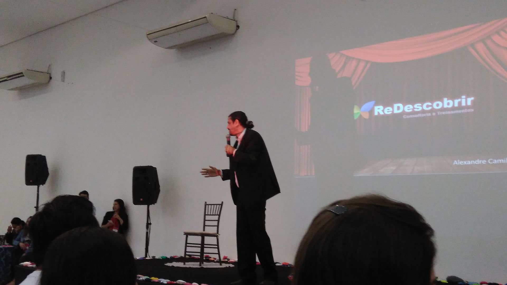 Entrando na reta final deste super evento, não poderíamos deixar de falar sobre a palestra incrível, ministrada por Alexandre Camilo, palestrante formado em Artes Cênicas, Pós-Graduado em Teatro Brasileiro, Consultor em RDH (Recursos Humanos Dramatizados), Dramaturgo, Ator, Diretor, Consultor de empresas atuando na comunicação e liderança dentro do ambiente corporativo.
